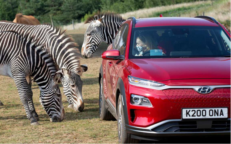 Hyundai is helping Chessington World of Adventures Resort get going, after reopening, by providing Kona Electric cars to drive families through the brand-new Safari Adventure VIP Experience.