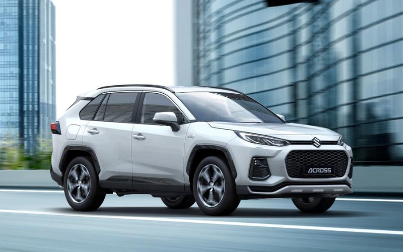 The new Across bears a strong resemblance to the Toyota RAV4, but is set apart by a unique front end that features Suzuki's large trademark grille.