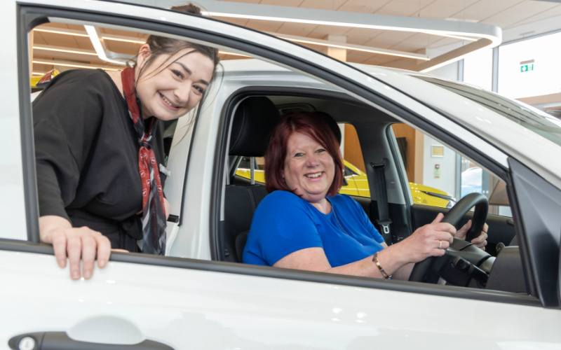 Colleagues at Vertu Kia Nottingham went all out to give Sue an experience fit for a TV superstar, chauffeuring her to the dealership and giving her the chance to pull back a sheet and reveal her brand-new Kia.